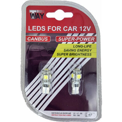 Autolampas LED T10 Canbus, 5SMD, baltas, 2gab3.19€Cena ieskaitot PVN 21%Vecā cena: 3.99 €