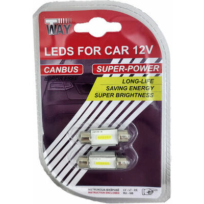 Spuldzes LED C5W 1 COBx4 chips 36mm, baltas, 2gab Canbus2.80€Cena ieskaitot PVN 21%Vecā cena: 3.50 €